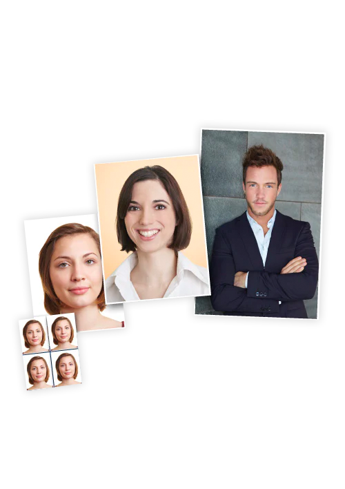 Wir bieten Passbilder, Bewerbungsbilder oder Visumfotos.